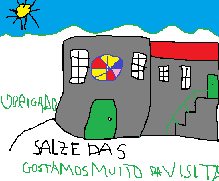 À chegada foram recebidos pela avó e pelo tio da Amélia. Foi uma alegria ver as árvores com frutos e os animais da quinta: os cães, gatos, galinhas, os bois que puxam o andor de Nossa Senhora dos Remédios de Lamego. Para comprovar o tio da Amélia mostrou a foto da procissão do ano passado. Mas, do que gostaram mais foi dos cavalos. Foram presenteados com um passeio na carroça e andaram no cavalo.